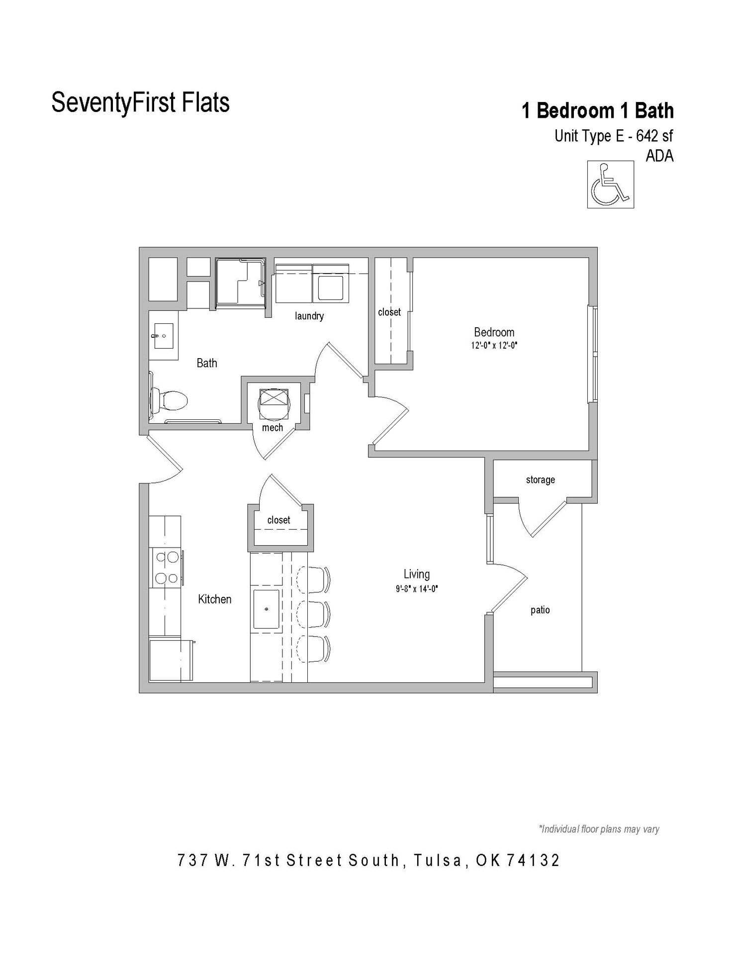 This incredible property boasts a peaceful community just outside of the hustle and bustle of Tulsa Hills. SeventyFirst Flats is pet friendly.